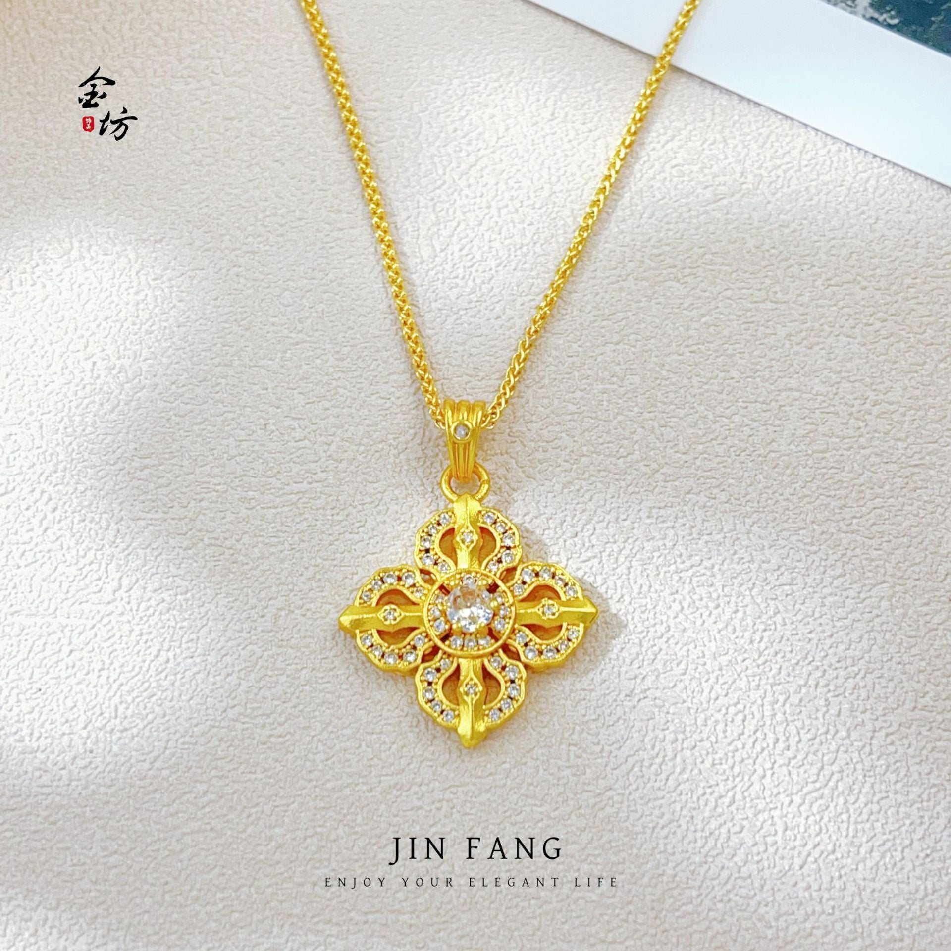 Alluvial Gold Hollow Jeweled Flash Cross Pendants