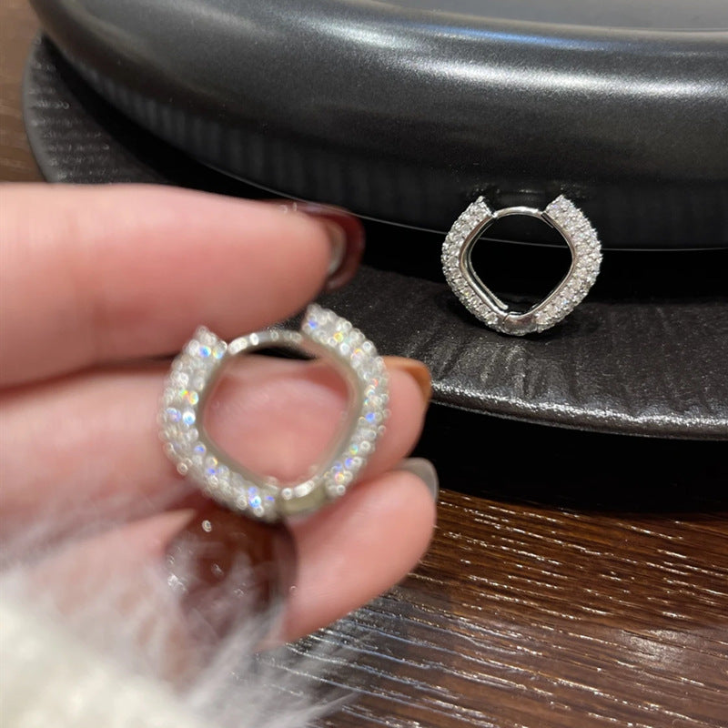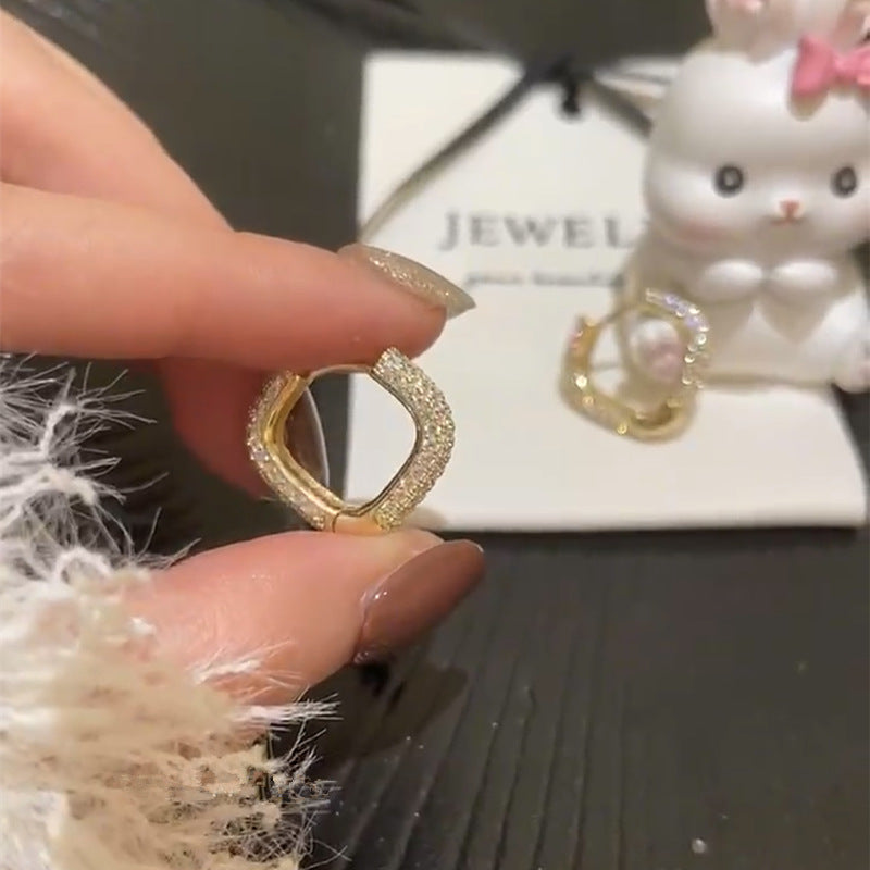 Inlaid Zircon Square Ear Clip Electroplated Real Gold Simple Earrings
