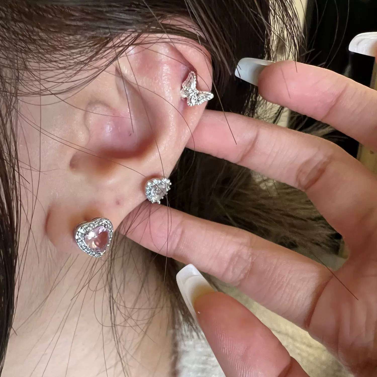 Milk Flash Fully Jeweled Loving Heart Earrings