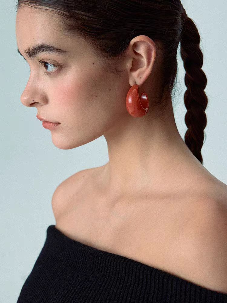 Orange Crescent Acrylic Design Simple High Sense Rings