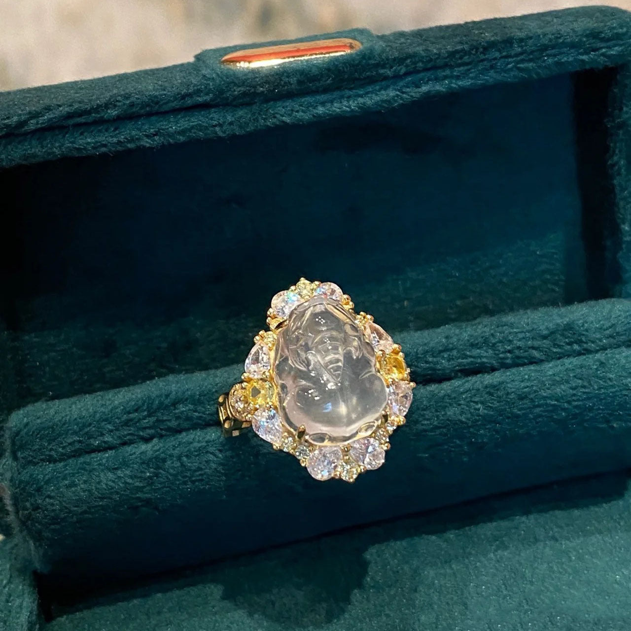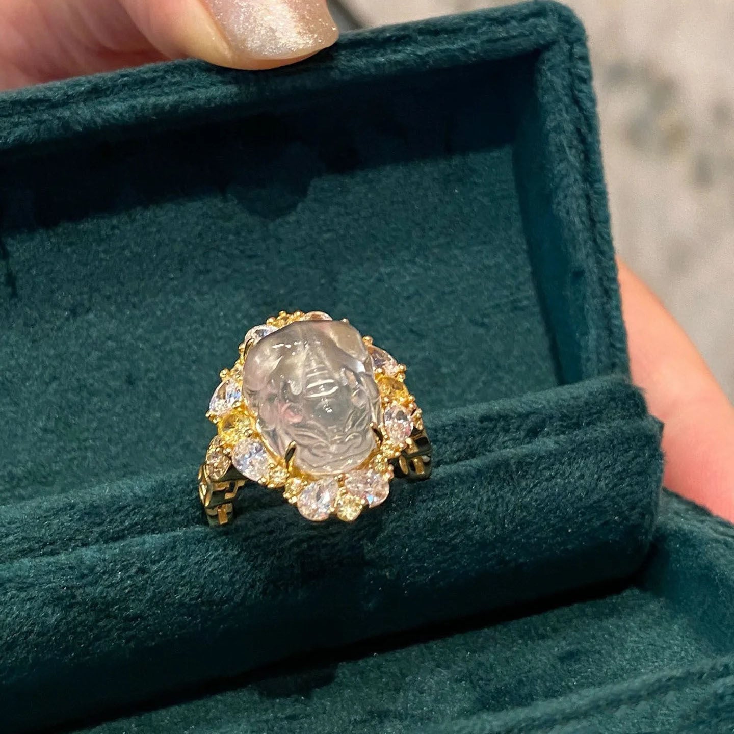 Retro Natural Chalcedony Jade Money Chic Zircon Rings