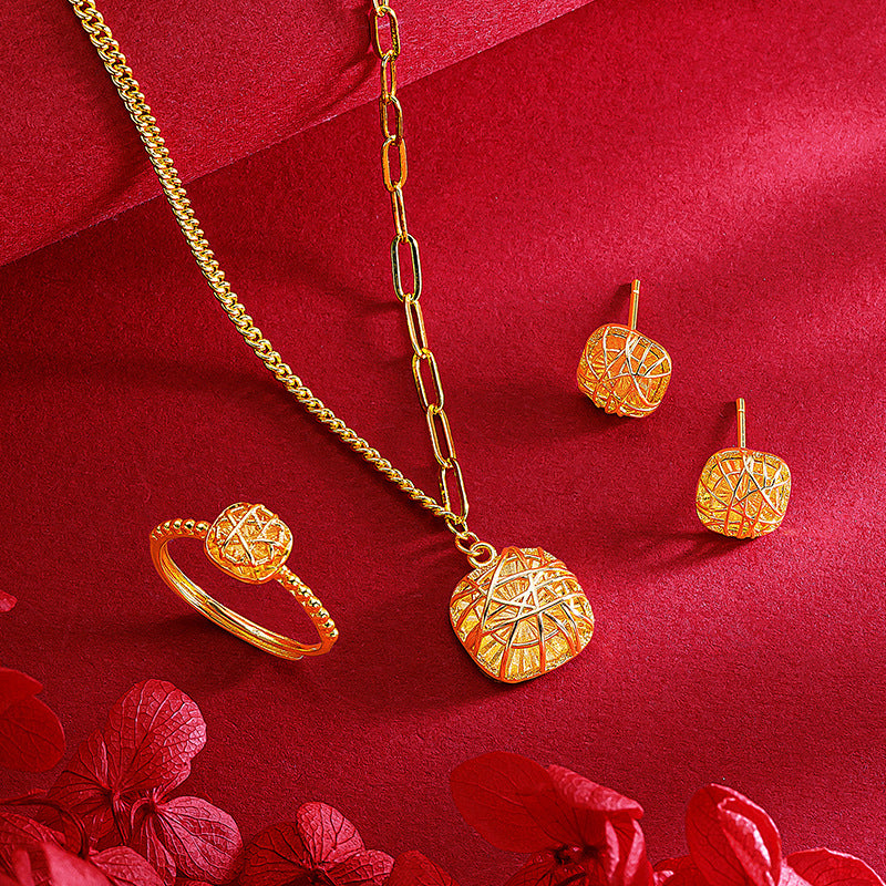 Women's Brushed Small Sugar Cube Three-piece Set Rings