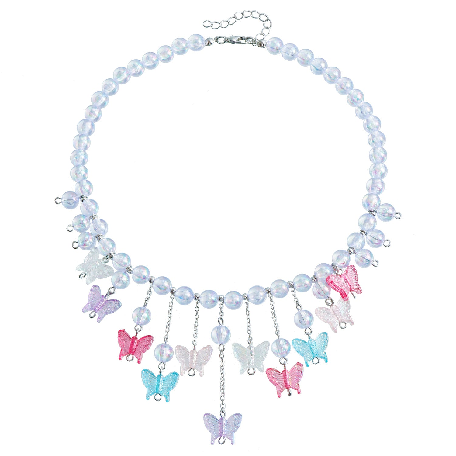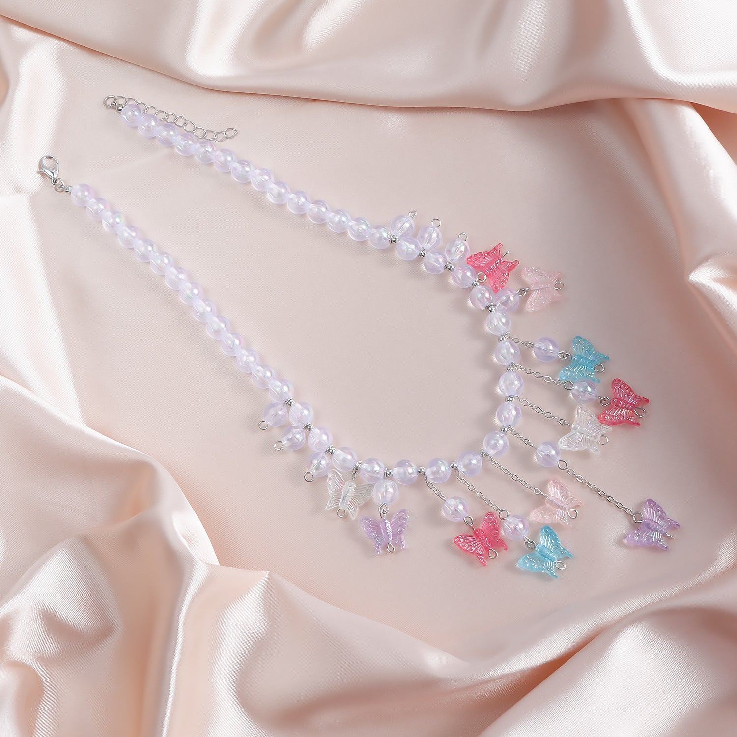 Women's Colorful Beaded Butterfly Fashion Temperament Chain Tassel Necklaces