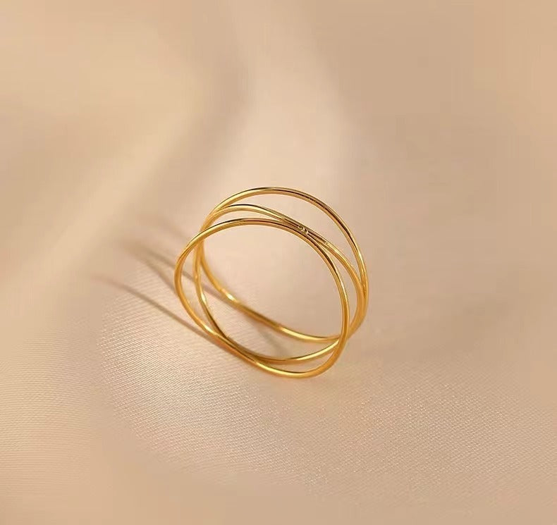 Color: Three-Layer Hairline Rule Ring-Gold
