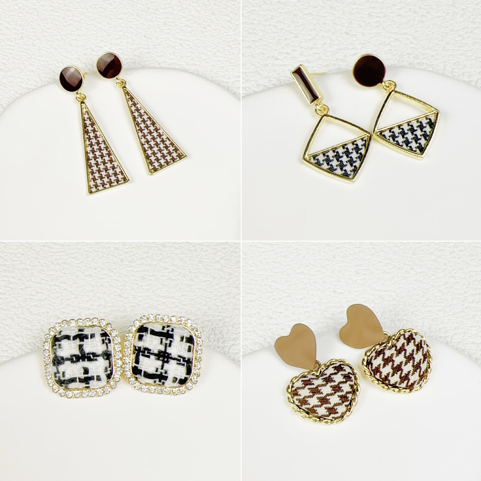 Women's Light Luxury Chessboard Plaid Love Heart Earrings