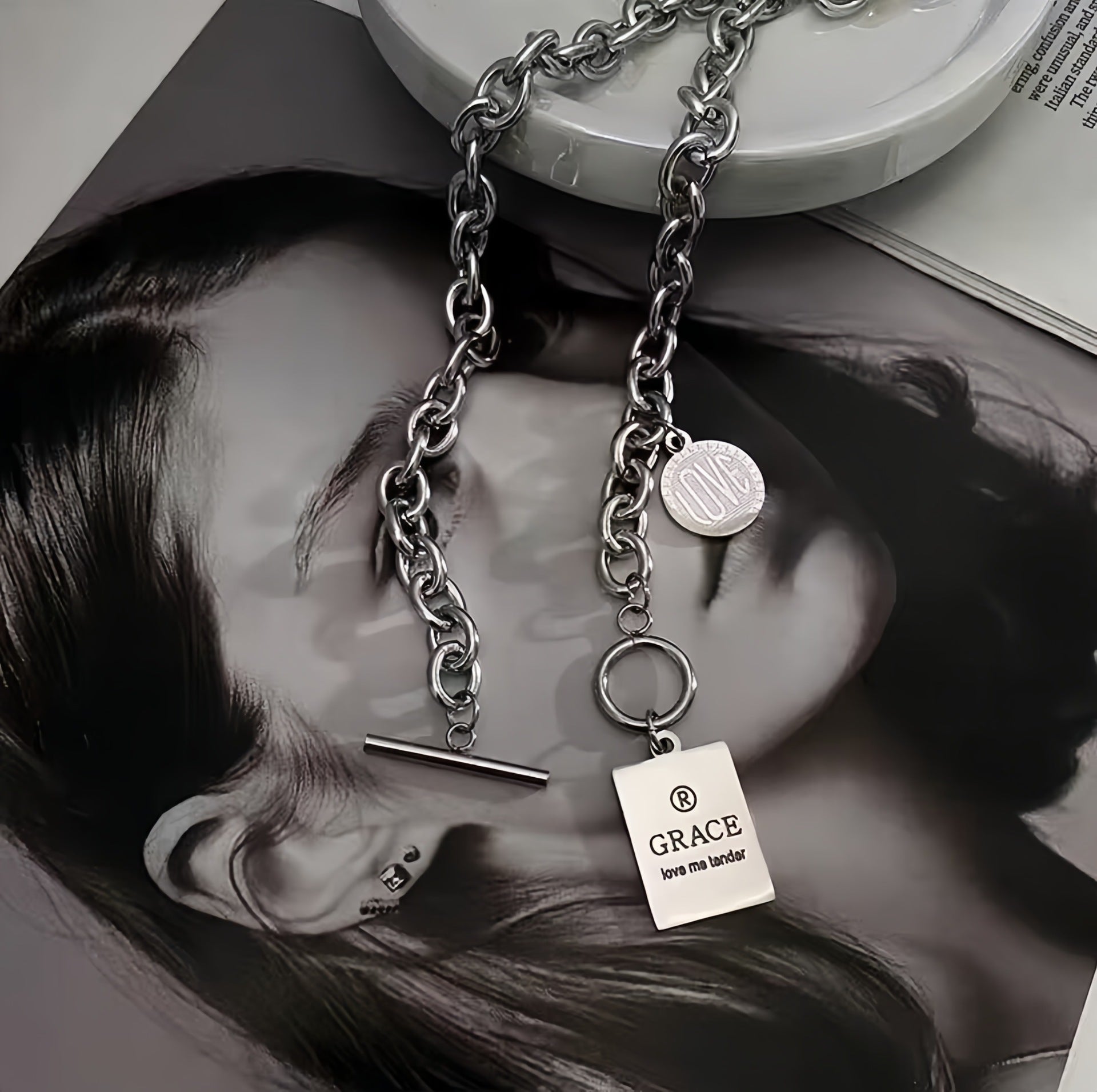 Women's & Men's Stainless Steel Letter Choker Combination Titanium Necklaces