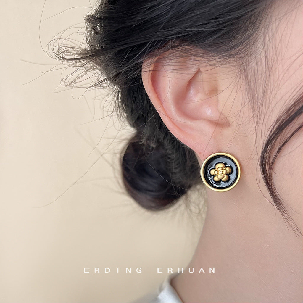 Women's Style Matte Black Drip Glazed Camellia Earrings